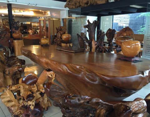 这是一个介绍台湾桧木的生长和用途的博物馆,也是桧木制品的展销店,东西很漂亮,但价格也很贵。
