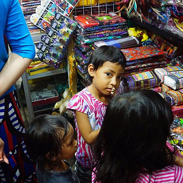 鸡蛋卖得好霸气!路边的摩托车位于Le Meridien酒店后面的菲律宾手工市场,里头的摊档一个挨着一个,货品挂摆令人眼花缭乱,琳琅满目的手工艺品奇特又可爱,有手提袋、小钱袋、木制相框、民族小娃娃,还有风铃、手链、颈链、戒指、扣针等色彩缤纷的装饰品,当然也少不了巴迪布衣裤。东西品种好多,唯一不好的就是只能现金,不能刷卡,也不能微信支付宝,马来西亚相比于我们大中国,还是比较落后的。 走到这里,小狮子挪不开脚步了,是他们民族特色代表的几样东西,做成小摆设,纠结了好久,真的好喜欢,狠心买了。 一路上都是提着端着过关、搭飞机、搭车,非常折腾。不过,一句话“千金难买我喜欢”,哈哈,任性就任性这一次吧。偷看我的小女孩我们到菜市场逛逛,准备买点水果。晚上七八点,他们的市场还是灯火通明,很是热闹。蛋蛋跟这个榴莲档的档主也很熟,档主挑了一个超级好吃的榴莲给我们。蛋蛋说,我们来的不是时候,现在是雨季,你们应该旱季再来一次,那时候的榴莲才又香又甜。