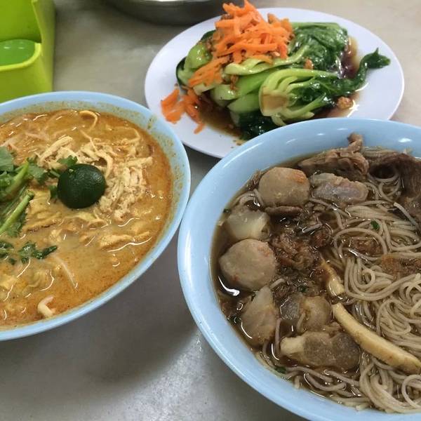 就在酒店附近超级近) 点了两杯酸梅柠檬冰,叻沙,牛杂粉,一个菜(ps觉得这里的菜不好吃~好好吃
