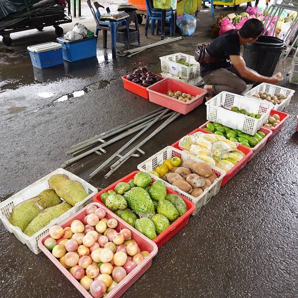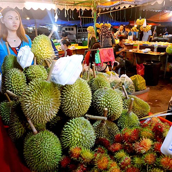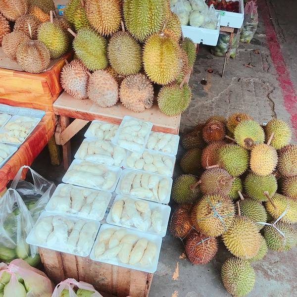 一路上都是提着端着过关、搭飞机、搭车,非常折腾。不过,一句话“千金难买我喜欢”,哈哈,任性就任性这一次吧。偷看我的小女孩我们到菜市场逛逛,准备买点水果。晚上七八点,他们的市场还是灯火通明,很是热闹。蛋蛋跟这个榴莲档的档主也很熟,档主挑了一个超级好吃的榴莲给我们。蛋蛋说,我们来的不是时候,现在是雨季,你们应该旱季再来一次,那时候的榴莲才又香又甜。