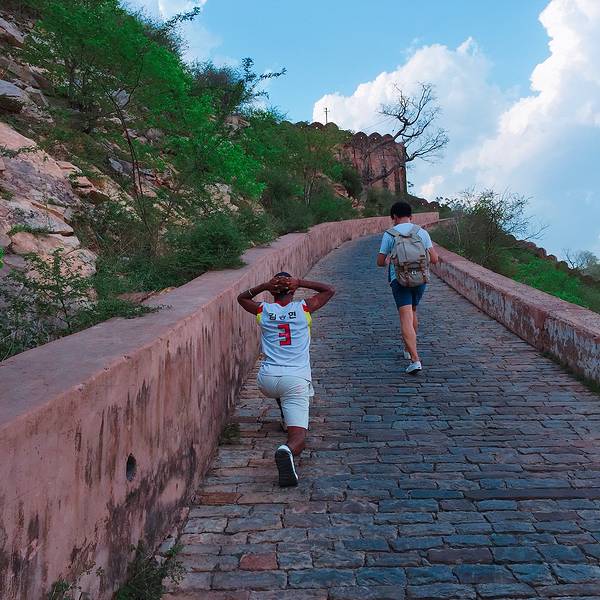 那时候我们预订的酒店就在老虎堡的下面,所以当时我们是从酒店出发爬上去的,尽管是 印度 的三月天,但是天气就像进入了夏天,烈日炎炎。所以,我们特意选了接近傍晚的时分爬老虎堡,但是想不到还是无法避开这高温的天气,灼热的太阳,我在大斜坡上差点中暑了,OMG!我真是用生命再逛景点啊~~ 而且老虎堡雄踞于 斋普尔 老城北侧陡峭山脊上,这里会有蜿蜒如长城般的城墙与城垛纳哈加尔堡💰:200Rs(如果买了套票的话,会比较划算)