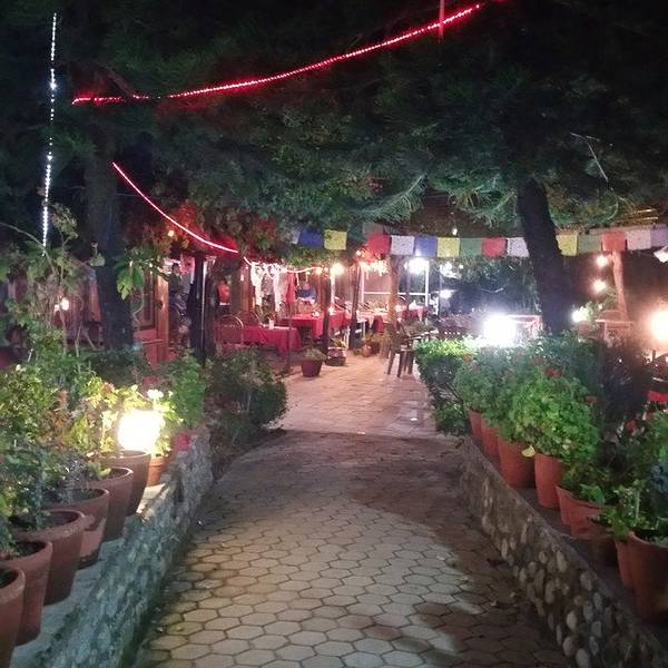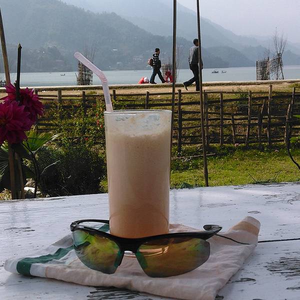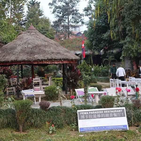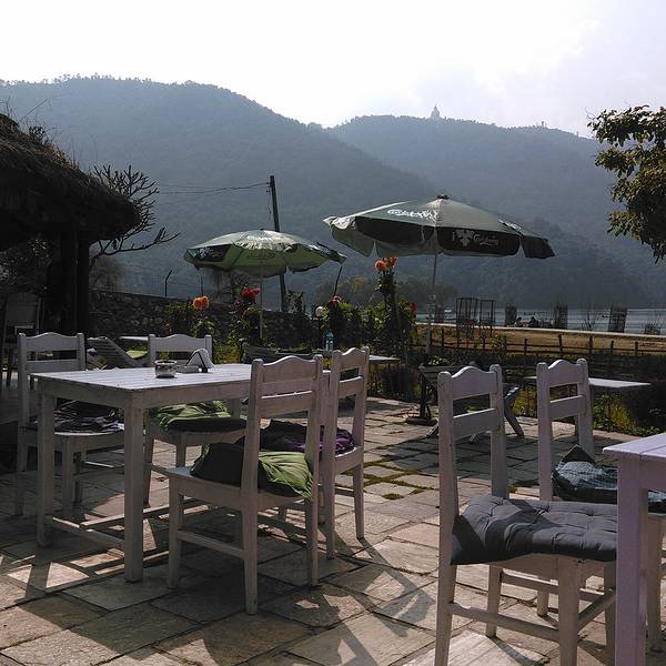 是一家西餐和尼泊尔餐混合的餐厅。在餐馆看费瓦湖的角度非常棒,一张敞开的湖口正面面对你,有亭子下的桌子…