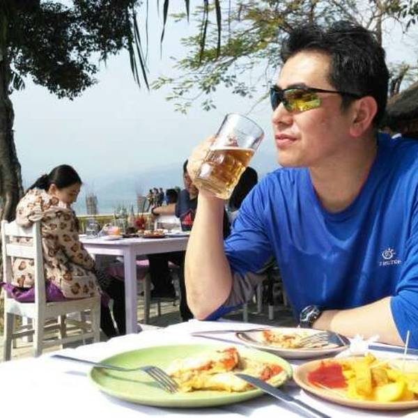 这次我们可没在湖边多逛,直接就来到了湖边号称最佳湖景的那家饭店。心情大好