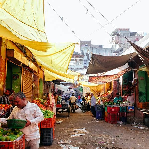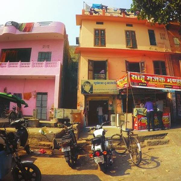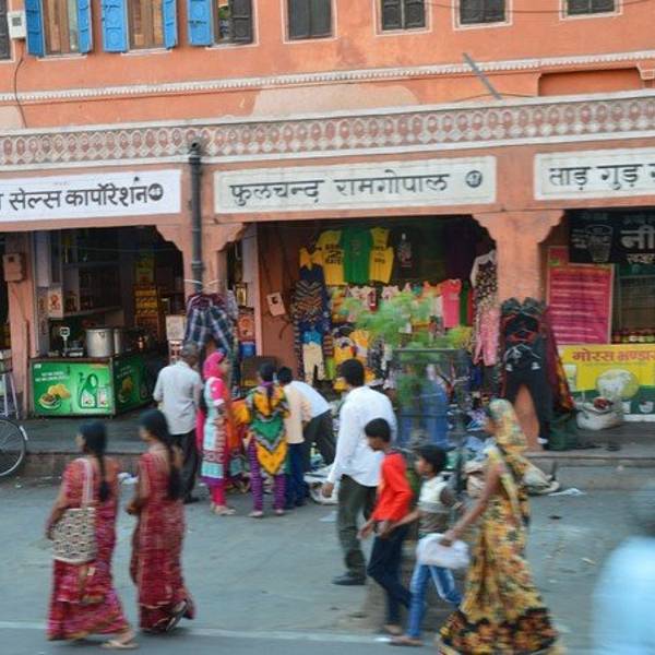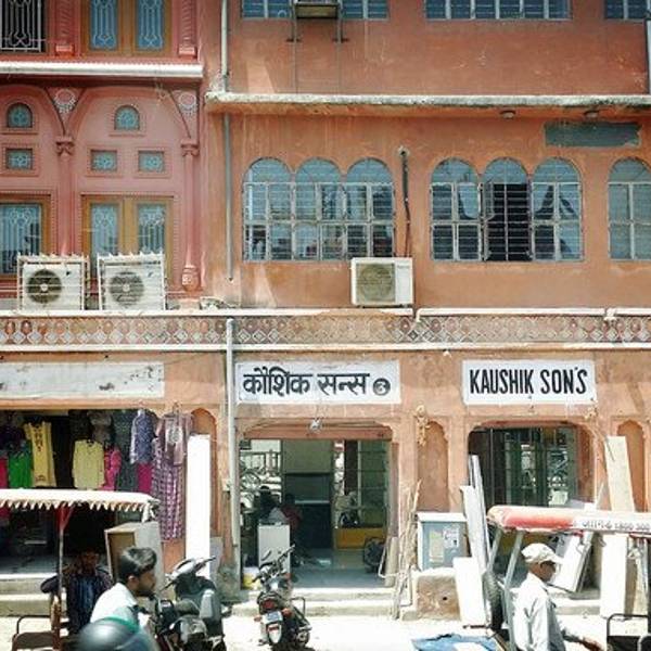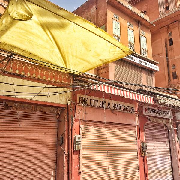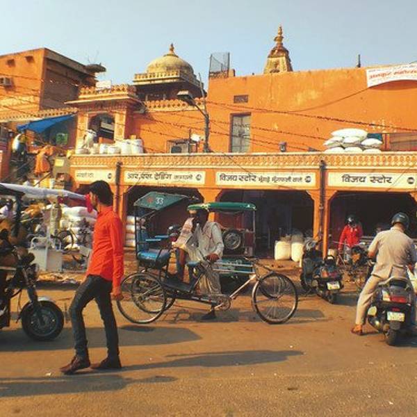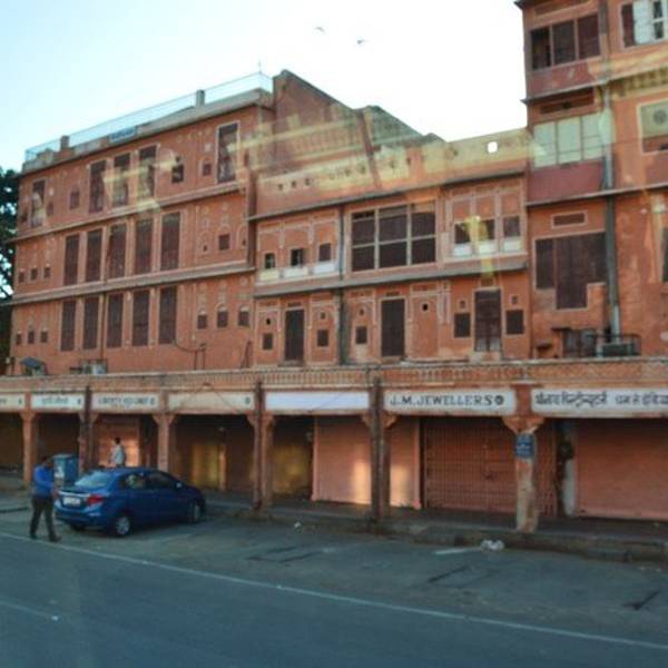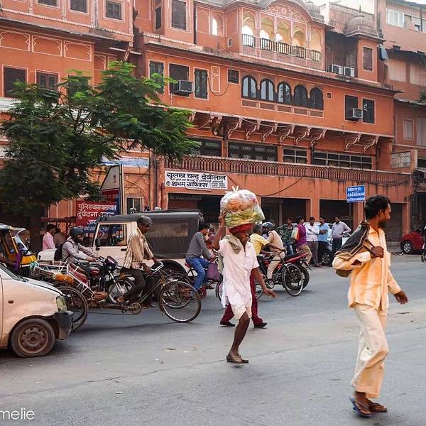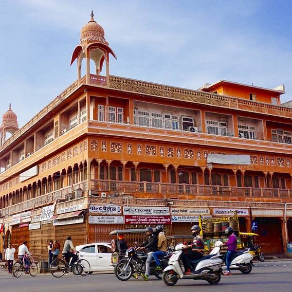 斋浦尔老城区遍布粉色(实际是橘色)房子,临街全是店铺,车水马龙交通比较混乱。