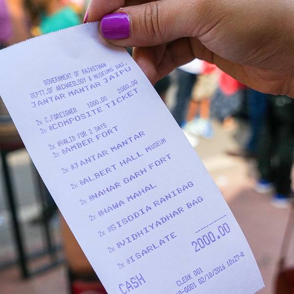 对了,TUTU司机的这个手势相当于小汽车打转弯灯的那个意思!我觉得挺好玩,然后为了抓拍它这个手势拍了二十多张照片~我们先买了一个通票,价格1000卢比。(约100人民币)