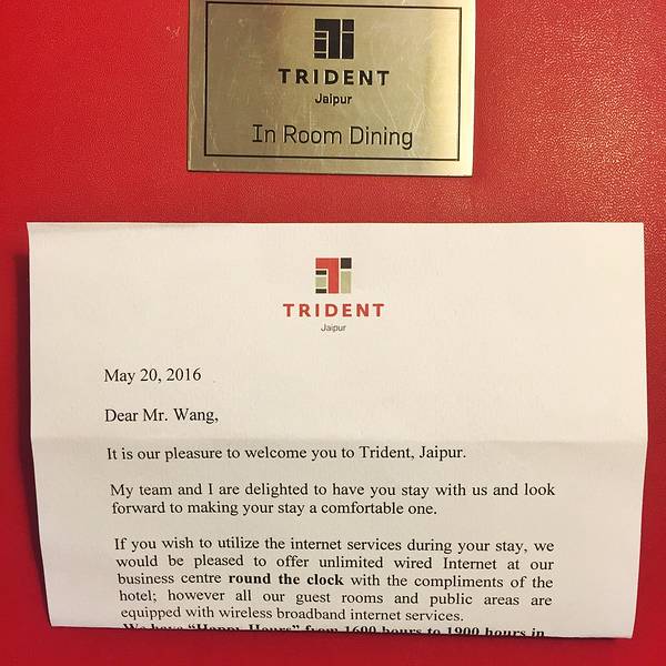 斋浦尔-粉城,相对比较现代化的city,拉贾斯坦邦的省会城市,原来风之宫殿只是一面美丽的墙,原来因为城堡为独特的奶白色,被人们成为琥珀堡,你可以看见蓝色的房子,破旧残败却异常美丽的寺庙,琥珀堡门口请的导游侃侃而谈举止也十分优雅得体,满满的书生气,当然,此行一开始,印度人民看到豆老师便会要求合影,有的说好漂亮,有的说衣服好漂亮,还有如粉丝一般紧紧跟随的,一切都是友好且自然,于是琥珀堡里出现了空前的盛况,排队合照,最后是导游出面制止了这场盛宴。而我,,,每次他们和豆老师合影完了,感觉这样不太好,便说,来吧,你也一起来~我!!!!!!!!!!!!!印度四城之一的粉城,建筑以粉色基调为主,走在路上感觉萌萌哒~而我,在这里沦陷的还因为它的各种手作制品,停不下来的买买买~Jaipur Trident如果你要去斋浦尔,我推荐你一定要去住这里。真真是惊到我了,入住时最喜欢看mini bar里有没有beer,嗜酒如命原谅我~于是无意间看见有一瓶饮用水是开着的,当时没有多想,就给送行李的小哥说了一声。于是,立马送了一瓶回来,于是又来一个人专门道歉,于是在我们吃晚餐的时候一个工作人员说是我们的房间管家,刚才进了我们的房间,感到非常抱歉之前的水是开过的。后来的我这个英语3级没听懂,前半截也完全靠我这蹩脚英语翻译成功,感觉我和印度人民心灵相通啊。然后···当年要考清华的豆老师说她要很标准的英语才能听懂,我心里翻了无数个白眼!!!于是。。。我们吃完回到房间,吓傻了,给我们送了4瓶水放在房间里,还是收费的水,且印度都有收小费的惯例,而该酒店的小哥在我们给小费时却一脸害羞的说,我们不能收小费,我真的,,,强烈推荐给你们,斋浦尔的三叉戟酒店!!!唯一一点就是,哈哈哈,把我变成了Mr.wang嗯,那感动我的四瓶水~ 展开