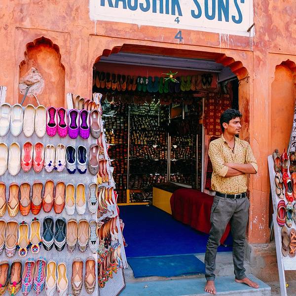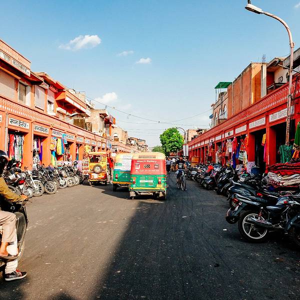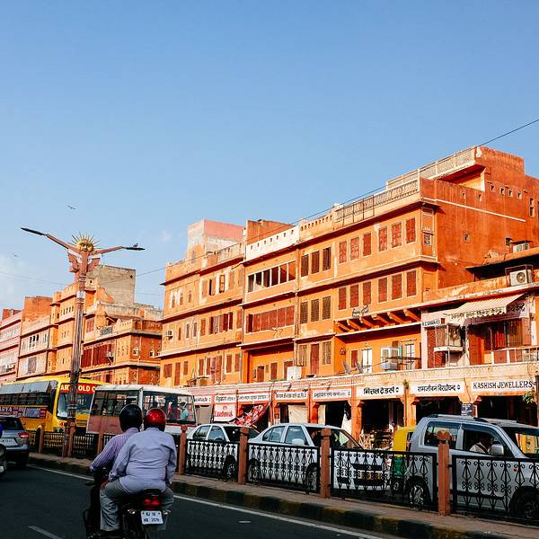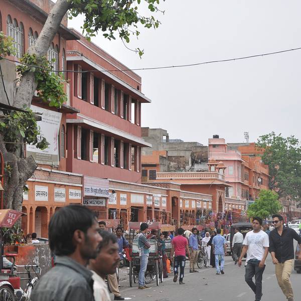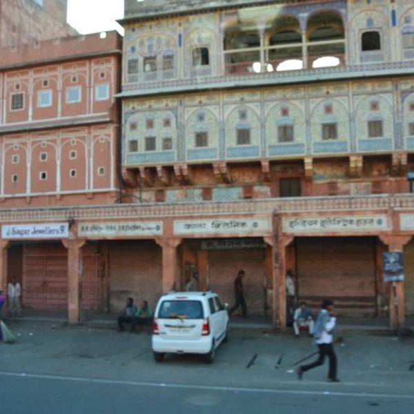 斋浦尔老城区遍布粉色(实际是橘色)房子,临街全是店铺,车水马龙交通比较混乱。老城区内的主要景点是风之宫(Hawa Mahal)和城市宫殿(City Palace),两个景点离得很近,都在城中心的东北角。