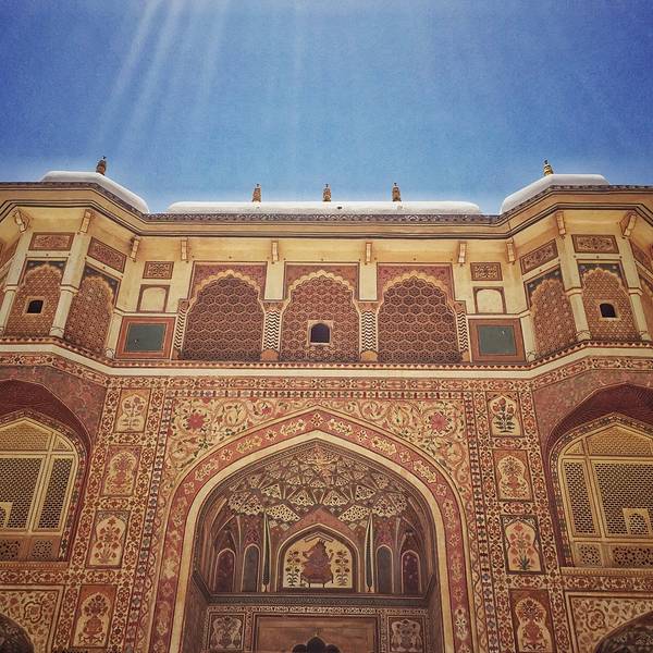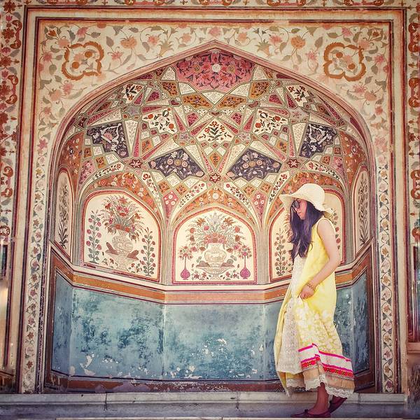 这里是斋普尔最值得细细观赏的地方,里面建筑很美,白色大理石雕塑的装饰令人叹为观止。大片来了粉城斋普尔是拉贾斯坦邦的首府,被人们称为“玫瑰城”,因为她的房屋建筑都被刷成了玫瑰一样的粉红色。让人不得不感叹印度人的浪漫情怀。据说,斋普尔也曾有过一个巨大的玫瑰园,长满着芳香的玫瑰,那是喜爱玫瑰...粉城斋普尔是拉贾斯坦邦的首府,被人们称为“玫瑰城”,因为她的房屋建筑都被刷成了玫瑰一样的粉红色。让人不得不感叹印度人的浪漫情怀。据说,斋普尔也曾有过一个巨大的玫瑰园,长满着芳香的玫瑰,那是喜爱玫瑰的王公建造的,后来王室衰败了,玫瑰园也荒芜了,但是,玫瑰城这个名字仍沿用至今。那为什么全城的房屋建筑都是粉红色的呢?因为斋普尔的创建者杰邦·辛格为了使这座城市与众不同,更加美丽,对城市实行了“色彩控制”,下令把全城的房屋都涂成粉红色。虽然很多年过去了粉色已经渐渐退变成了淡淡的橘红色,但依然不影响她的美。斋普尔算一个大城市,这里有不同的Bazzar,可以买到当地的印度服装,有些景点需打车或是坐公交车前往,我们选择的是前者。在风之宫殿和老周老李他们汇合之后,由于风宫还没开门,我们决定步行前往下一个景点,在途中经过一座像是寺庙的房子,我们往里走,突然一个小孩从上面探出头来,招呼我们进去,我们才知道这是一户人家,很有钱的感觉。我当时一直不知道是个男孩还是女孩