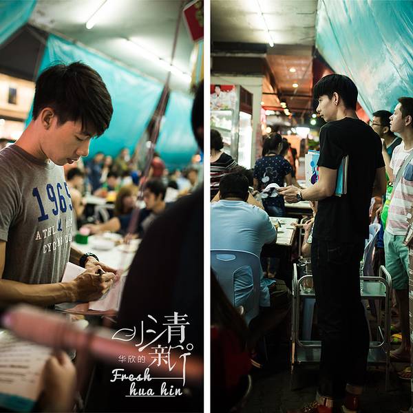 晚饭我们在靠近夜市的一家大排档吃,十分火爆,我们排了近半小时队,不过排队的过程,会有帅哥服务员过来下单,有几个还会说中文。