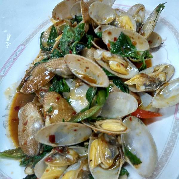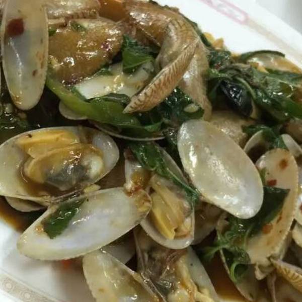 这家有最好吃的冬阴功,不说排名,不说攻略,就说排队的人,这家是最多的,晚上正餐的时候5点多,路过这家,排了有20个人以上,看了下觉得头痛,去了海边,晚上8点的时候回来刚好没排人,也没空位,所以我们排了第一号。不想排队晚上8点去,或者下午4点,中午12点营业。地址在华欣夜市附近,跟夜市隔了一条马路,街角人最多的一家就是。 特色是正宗泰北料理,泰北菜味道会重一些。这家店建店五十年,比还建兴早4年。装修很简陋,就是路边半敞开式的摊位,三面开放式的桌子,桌子也是最简单的那种,不奢华,就是好吃,就是便宜。几乎每桌都点了比人数多的菜品,由于我们是当晚的第三顿饭,所以点了清淡的几样。 服务员会说中文,只会一点,点菜还是英文好用,或者看旁边桌的菜品,老板很认真,每桌都是按顺序做菜,想来能够坚守五十年的饭店,该是会有一个始终如一认真较真的老板吧。 冬阴功,无敌了,酸度大些,重重的香茅味,合着柠檬香,那味道极其开胃,虾是去壳的虾仁改刀,样貌不出众但是桌桌点,分量不小价格30块。 炒花蚬子,跟我们的做法类似,价格也是20-30块之间,分量不小,个头不大,调味没川菜的辣炒好吃,略过。 柠檬茶,6块一杯,惊艳,没有别家的酸涩,就是顺口的冰碴跟柠檬香,茶香淡淡的,后悔没多点几杯打包了。冬阴功,虾仁好多块,这一晚都被我喝掉,还是在吃过两晚饭的基础上,太好喝。虾辣炒花蚬子酱料跟我们的不太一样冰柠檬茶,第二天去了中午吃的那家也点了柠檬茶,以为是华欣的柠檬茶都好喝,结果发现差太多,那家就有酸涩的口感。人特别多