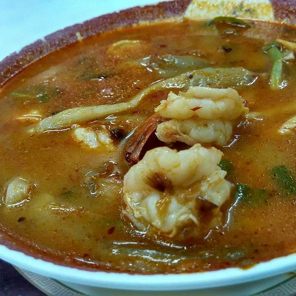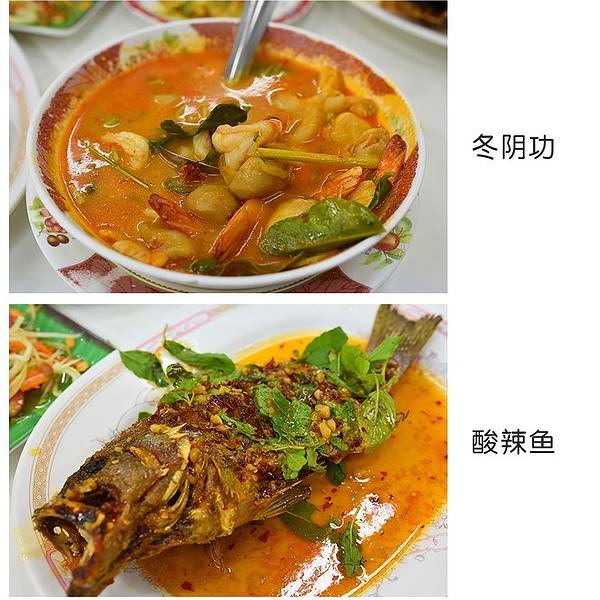 有闻名于泰国中部的传统冬阴功汤,椰汁汤底,用料十足。还有蟹粉咖喱炒蛋和招牌炸蟹丸。夜市路口人气超旺的泰国菜餐厅,用餐时间满满人潮,建议避开用餐时间避免久候。菜单上有泰文跟英文的对照,还有照片,大部分的菜都有分大小份,而且价格很亲民。