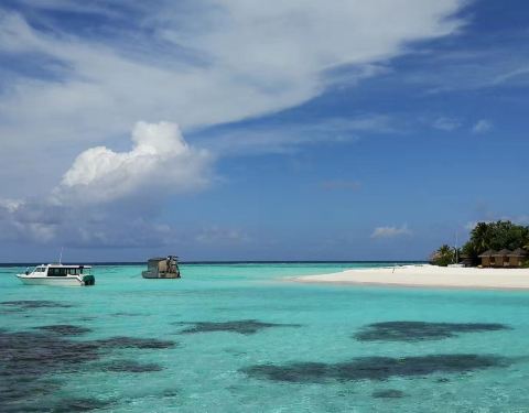 马尔代夫卡曼都岛浪漫岛屿,天蓝蓝海蓝蓝,沙滩软绵绵,度假胜地,赞