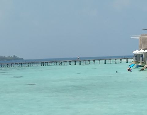 可可拉岛是我第一次行程中的第二个岛屿,行程是自广州出发,马尔代夫与我们是有3小时时差的。这是我第一次跨时区遇到时差问题。飞机是南航的,机上是可以填写入境表的,但是我们反应迟钝了一些,等要的时候空乘告诉我们没有了,当时小闹心,那么一张薄薄的纸难道不能储备充足点让乘客方便点么。下机后先填好入境表才能通过取行李。之后就会有酒店的工作人员接待,如今的马累机场修葺一新,不再是酒店人员站一排了,而是每个酒店有自己的接待柜台。