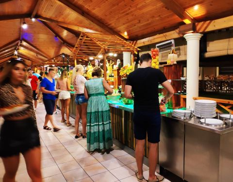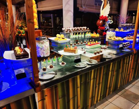 晚七点开始晚餐,一直到十点,自助餐厅很大,东西也很多,水果和甜品特别好每天晚上都有喂鲨鱼和魔鬼鱼的表演,六点半直接过去就行。晚七点开始晚餐,一直到十点,自助餐厅很大,东西也很多,水果和甜品特别好