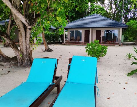 太阳岛(Sun Island Resort)是一座位于南阿里环礁的四星岛屿,它距离马累国际机场约107公里,乘坐内陆飞机飞行35分钟便可上岛。 太阳岛属于大岛,面积很大,岛上有篮球场、高尔夫球场,甚至小型足球场,环岛一周需要1小时左右。岛上提供很多活动,且出海要比其他岛屿相对便宜。但因岛上游人会较多,尤其是旺季,活动很快会满员,因此尽量提前预订。 岛上沙质非常好,白天可以趟在遮阴的沙滩椅子上,聆听海浪声,吹着海风休息。傍晚可以漫步沙滩上,看美丽的日落。此外,在主防波堤尽头的房礁可以进行浮潜,礁湖的其他宽阔地方也适合游泳和水上运动。