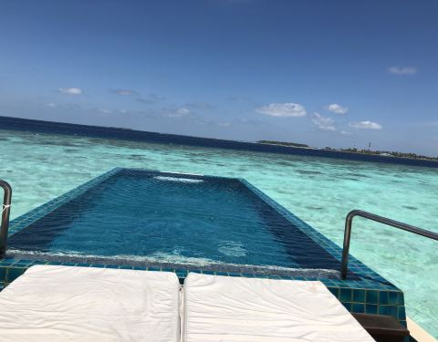 无边泳池很棒!整个水屋设计都很棒。 沙屋也不错,每个小屋都有属于自己的沙滩,遮阳伞和躺椅。 很惬意水屋赞!日落这边的单号水屋是背向本岛的,我感觉私密性更好。无边泳池很棒!整个水屋设计都很棒。 沙屋也不错,每个小屋都有属于自己的沙滩,遮阳伞和躺椅。 很惬意!