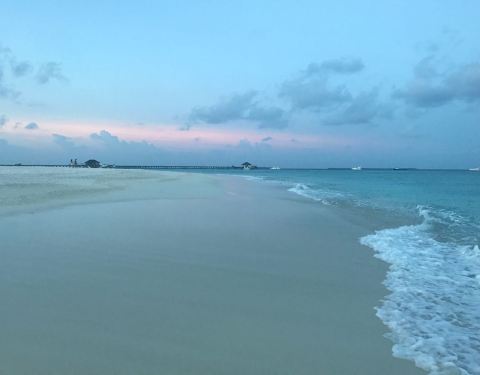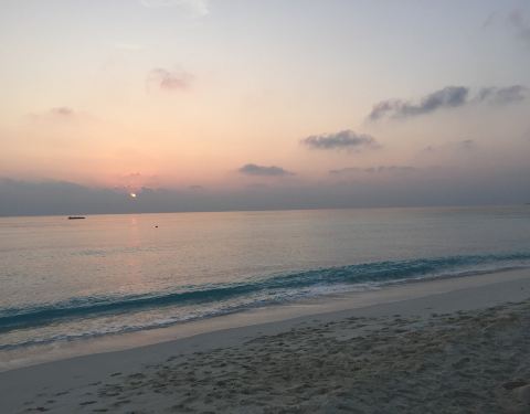 可惜当时太晒,不过傍晚的景色也是很迷人的马尔代夫,最有名的肯定是海边的沙滩,登岛后一直往东走,穿过宁静的住宿区就到了沙滩,非常长的沙滩,适合各种拍照!!可惜当时太晒,不过傍晚的景色也是很迷人的