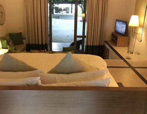 首先岛上的服务真的很好,我说蚊子多,马上就有工人全岛的打药。岛上会中文的小黑管家中文很好首先岛上的服务真的很好,我说蚊子多,马上就有工人全岛的打药。岛上会中文的小黑管家中文很好。但是雨季真的选择要慎重,来了5天没看见一天太阳,天天刮大风下雨,虽然雨是一阵一阵的但是不下雨的时候天空也全是...首先岛上的服务真的很好,我说蚊子多,马上就有工人全岛的打药。岛上会中文的小黑管家中文很好。但是雨季真的选择要慎重,来了5天没看见一天太阳,天天刮大风下雨,虽然雨是一阵一阵的但是不下雨的时候天空也全是云,根本看不到马代蓝。更别想看到星空,水屋风大的直摇晃,风声就想北京冬天的56级风似的,嗷嗷的。我们真的是运气太差了。赶上的天气不好。我想旱季应该是很美的。房间也很好,服务也很好,就是没赶上好天气,不赖酒店 展开
