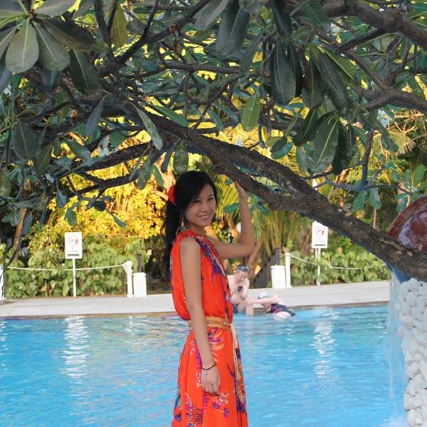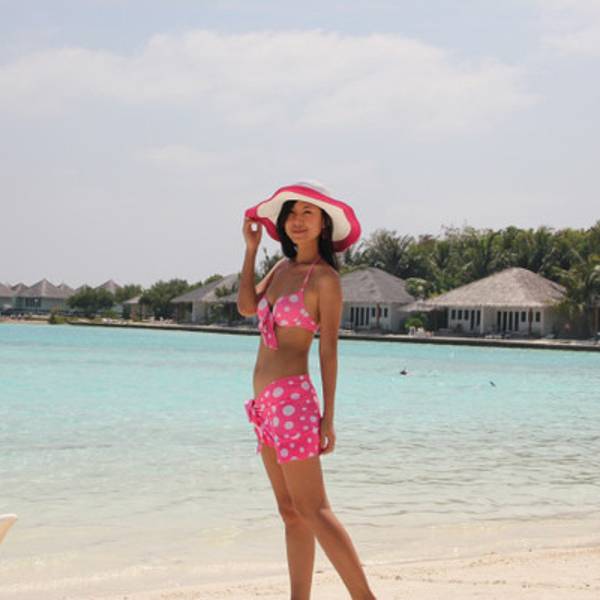 中午休息了两个小时,在阳台发现下面的海里有鱼,于是兴致勃勃的换上了比基尼,戴上了浮潜三宝——面镜、呼吸管、脚蹼,下海啦。