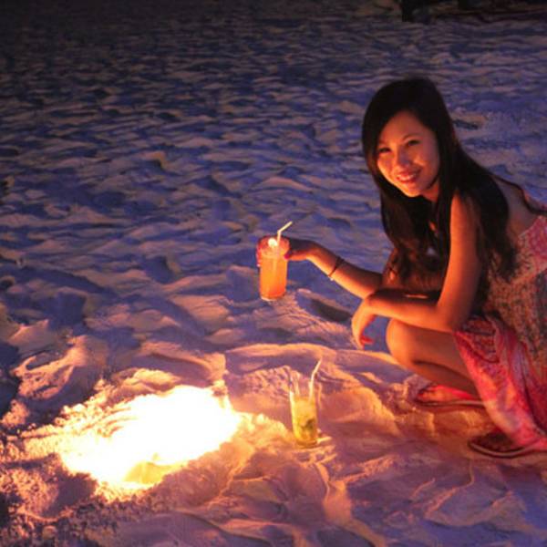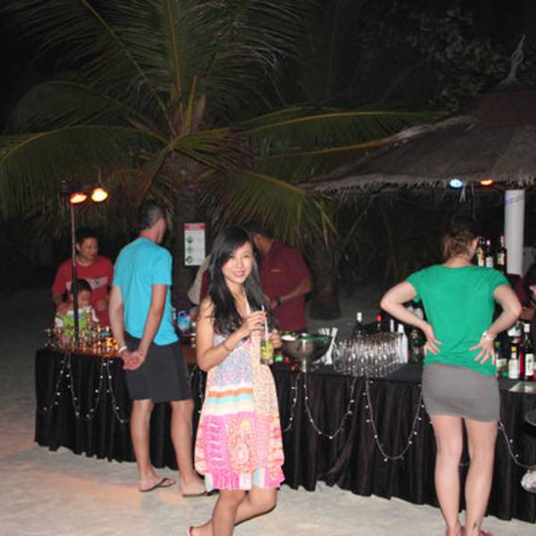 品尝着各种现调鸡尾酒,享受着美妙的灯光音乐,让人忍不住踩着绵软的白色沙滩跳起舞来。一直玩到晚上11点多,才恋恋不舍的离开派对回房间。