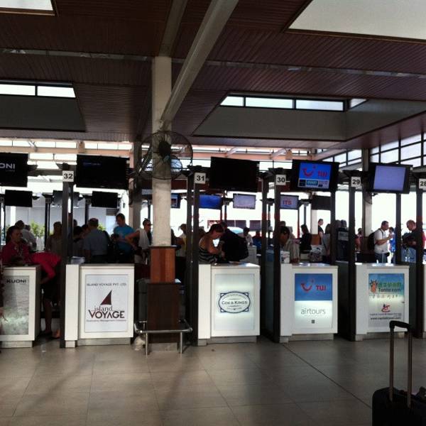 10号早上7:00,转乘了另一架空客,继续飞往马累。大概一个半小时到达,马累当地时间是早上八点多,比北京时间早三个小时。顺利的入境,取行李,然后在柜台找到我们要去的岛——梦幻岛,ChaayaIsland。