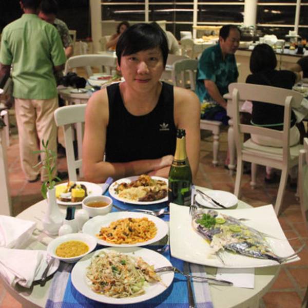 说实话,做的并不好吃,不过品尝着自己钓上来的海鱼,满满的成就感。这一餐是几天以来最丰盛的一餐了。旁桌的中国人还送了我们香槟酒。