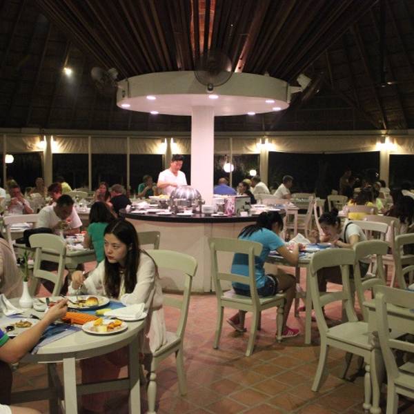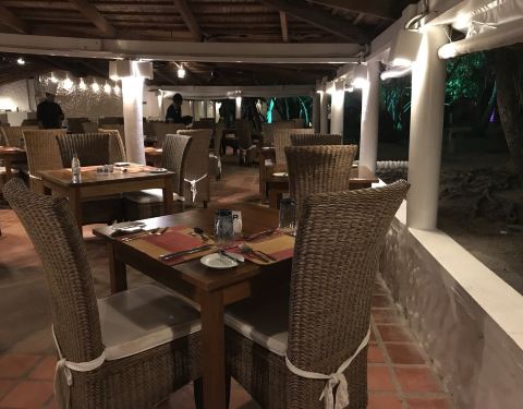 晚餐七点半开始,找到我们的餐桌,发现已经给我们留下了一封信——离岛通知,上面详细说明了第二天离岛的时间等信息,很周到。坐下不久之后,我们的鱼上桌了。