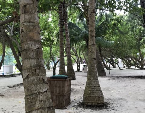 走在岛上任何一处,脚下接触的都是软软细细的白色沙滩,高大的热带棕榈树和低矮的大叶灌木交错的生长