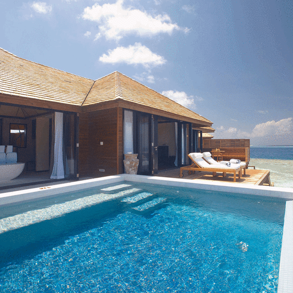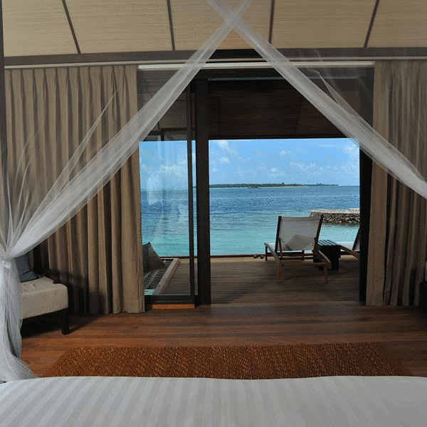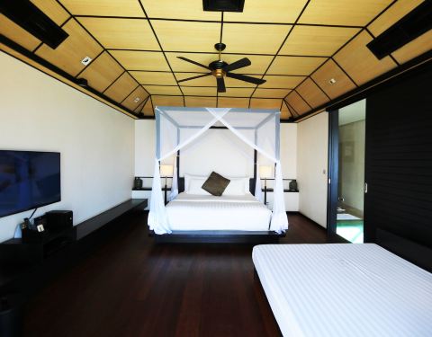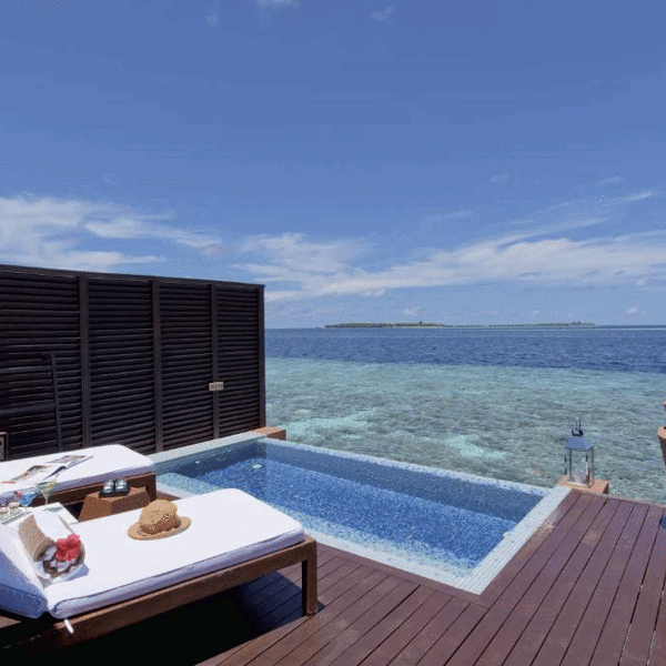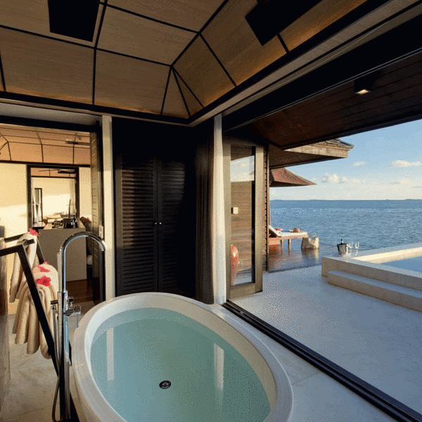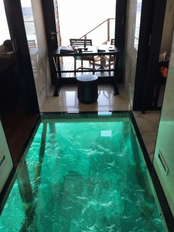因为我提出想先看看房间,所以稍事休息后就开始一路向东考察每个房型。走过一排普通沙滩别墅之后就看到了海滩套房,这是岛上新增的房型,比我住的沙滩别墅大一点点,装修也看起来更精致一些,但是把室外的淋浴空间改到了室内,其他地方都沙滩别墅差别不大。紧接着海滩别墅末端的房型就是沙滩家庭别墅,它是由两座互连的海滩别墅组成,更适合家庭或朋友聚会居住。沙屋对面是泻湖别墅,它位于岛屿南侧沙滩边,属于半沙半水的房型。进门后首先看到迷你吧,再往前走一点右手边就是大双人床,有一侧阳台的设计与沙滩别墅相差不大,都配有室外淋浴和按摩浴缸。唯一不同的是另一侧甲板是在水上的,躺在床上就能欣赏到绝美海景,还能从甲板扶梯直接进入泻湖。走到Vibes酒吧之后,岛屿这一边就到尽头了,水屋都在岛屿的西边,小爱又一路折返回去接着考察水屋。在奔波的路上我发现岛上每隔几米就有一个保温箱,里面都是冰水和饮料,供客人任意饮用,这未免也太贴心了!走上岛屿西边的栈道就能看到豪华水上别墅,从栈道开门走进去,小爱就震惊了!长廊尽头地板竟然是透明玻璃,踩上去就像直接站在了海面上。玻璃地板左边是淋浴间,超宽敞的空间里配备了洗手台、按摩浴缸、室外淋浴,浴缸前面还有电视,边泡澡边看电视一定爽歪歪。玻璃地板右边就是卧室啦,卧室配有一张特大床和一张加大沙发床。淋浴间和卧室外面就是超大甲板,除了有一个私人泳池之外还放有一张小餐桌和两张躺椅,多层甲板让海景视野更加开阔,步梯可直接下海。沿着栈桥一直走到尽头栈道分成了四条,上面分别坐落了一间日落水上套房,八爪鱼触角的设计保证了每一间套房的私密性,套房视野互不影响,都能get到日落的最佳视角。为了给大家看到效果图,小爱找小黑要了张航拍图一进房门,小爱发现这个房型面积比沙滩别墅大了不止一半,足足182平方米!不愧是岛上最豪华的房型。开门就是客厅,映入眼帘的是一张超大的沙发床,面朝大海,既可以享受房内的阴凉又可以欣赏无边的海景。客厅右边是卧室,左边是淋浴间,房内设施与豪华水上别墅相差不大,甲板空间更为宽敞。 展开