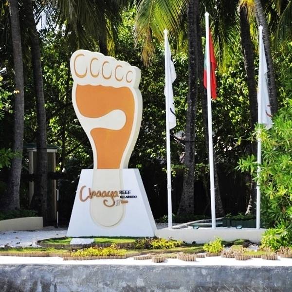后来才知道,这个岛是Chaaya Reef Ellaidhoo(查雅暗礁艾莱霍酒店),潜水胜地大约行驶了十来分钟就到达了我们中转的岛屿。标志真是奇特啊,一个大脚丫子!后来才知道,这个岛是Chaaya Reef Ellaidhoo(查雅暗礁艾莱霍酒店),潜水胜地。我们随着船上的乘客下了船,岛屿的接待人员也很热情的...大约行驶了十来分钟就到达了我们中转的岛屿。标志真是奇特啊,一个大脚丫子!后来才知道,这个岛是Chaaya Reef Ellaidhoo(查雅暗礁艾莱霍酒店),潜水胜地。我们随着船上的乘客下了船,岛屿的接待人员也很热情的给我们递上了冰毛巾。既然只能在这里中转,我们就怀着愉快的心情来对待吧,既然是出来旅游放松,那么就随遇而安吧!旅程,不就是这么充满未知吗?我们在这里中转,等于多来了一个岛啊,多棒啊~ 展开