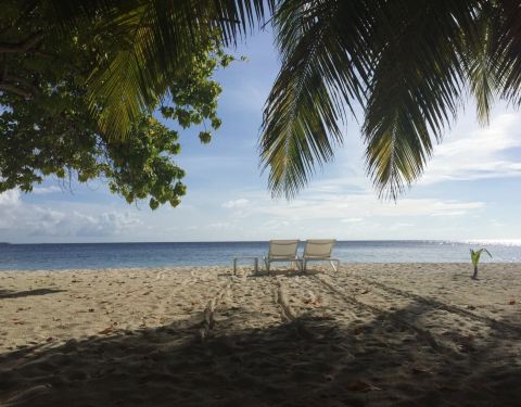 看,度假岛的水真的都是这么透明,更何况,这正是早上。这真不是P的,拍出来人特别黑。远处的水飞果真爷爷在岛上有势力,T带我们来度假岛,岛上还提供了一间房给我们,反正之前去瓦度岛只提供躺椅,双鱼岛只能坐在树荫下面。开始我们以为不能用浴室,没想到还能在里面洗澡之类的,真不错。