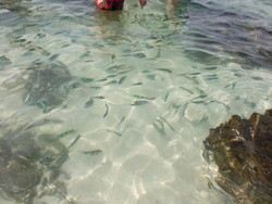 水清花美,在沙滩上可以清楚的看见水中的鱼,其中花很艳丽!