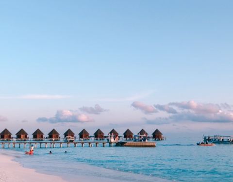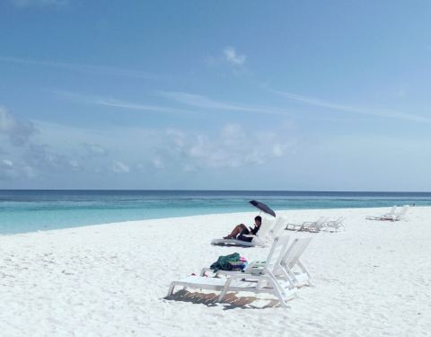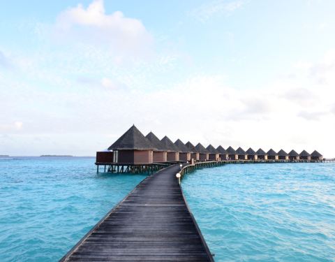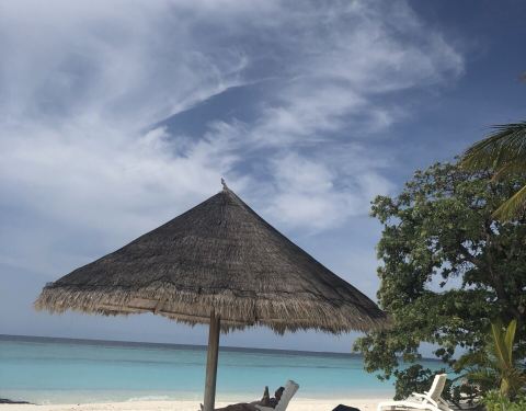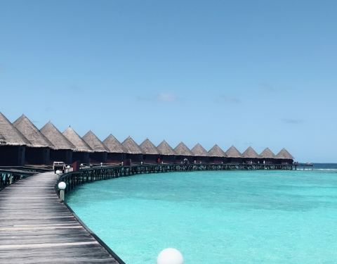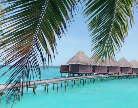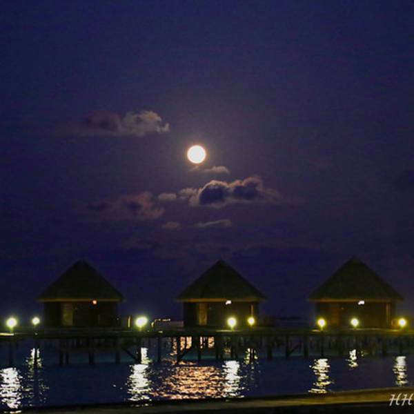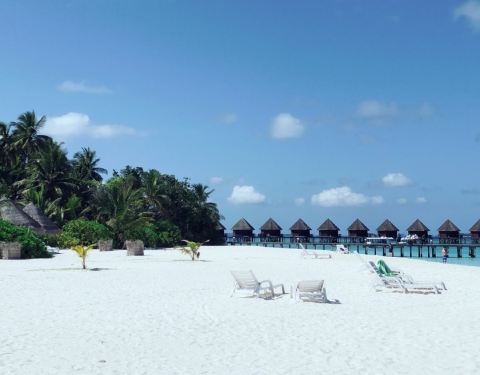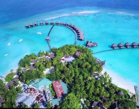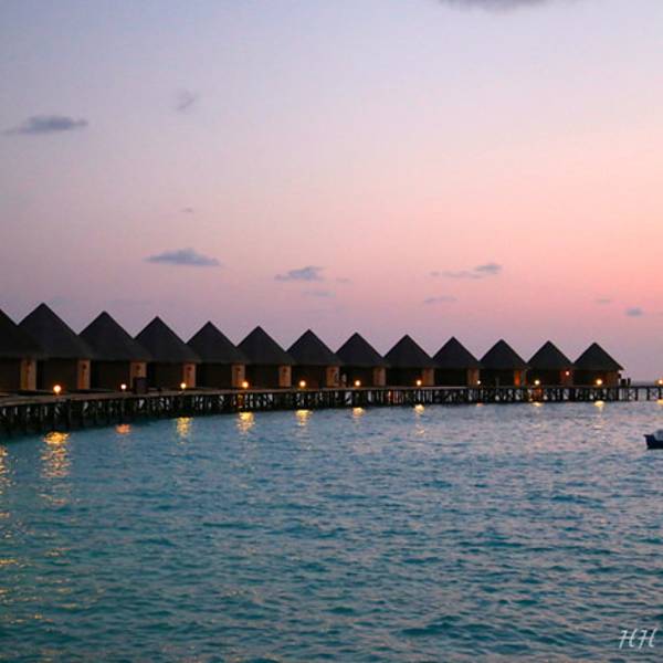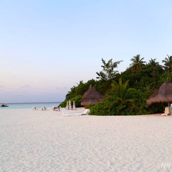 蓝色美人蕉岛(Thulhagiri Island Resort)又名美人蕉岛,属于豪华岛屿度假村,2010年翻新重建,建成一个具有异国情调的岛屿。乘坐快艇30分钟便可上岛。 高大的棕榈树和白色沙滩交相辉映,闪亮的蓝绿色珊瑚礁石围绕着本岛,小岛保留着热带岛屿的原始风貌,房间基本上都是竹子做成,但颇有一种自然民俗的感觉。 有三个好地方:一处位于水上屋尽头,那里是浮潜的好地方,阳光直射清彻的海水,一眼就看到海面下好多漂亮的鱼在游动。二处位于餐厅后面,一片平静的碧蓝海面,随着微风前后摇摆,是水上运动爱好者的胜地,好多人在此乘风破浪。第三处位于每间小茅屋的门口,由于面向西面,太阳不断同我们的肌肤打招呼,是晒黑的好地方哦!同时由于水位很浅,风浪又小,此处也是学习浮潜的室外泳池。