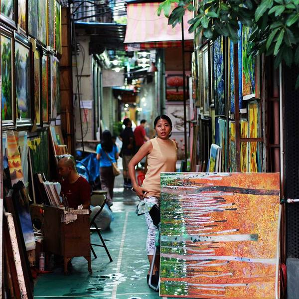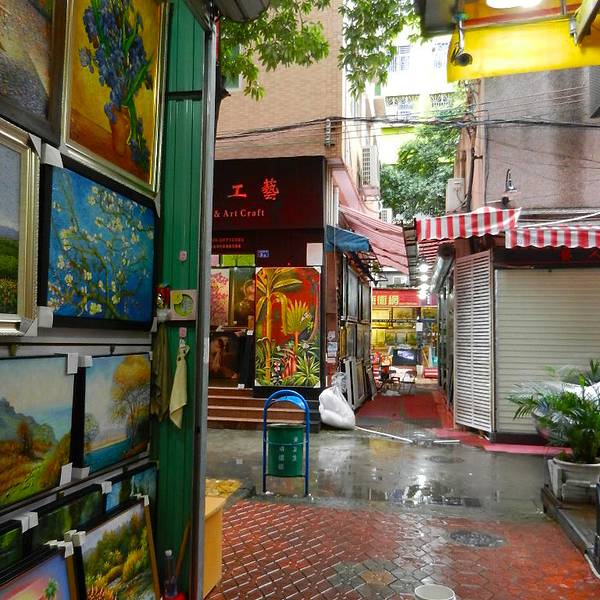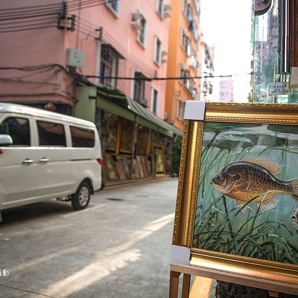 大芬村纵横交错,这里的每一间房子即是店铺也是画廊作坊。每一处街头转角都隐藏着意想不到的惊喜画作、涂鸦墙,甚至还可以遇见画师现场作画。