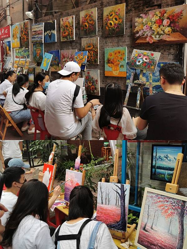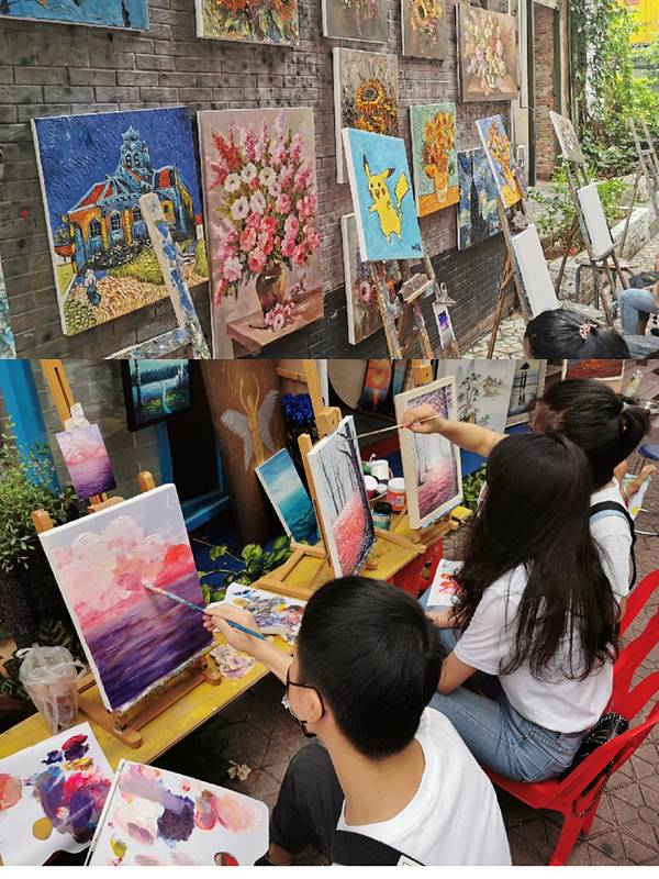每到周末,你会看到一些艺术爱好者在这里体验一下油画创作,当然也可以购买自己喜欢的油画。