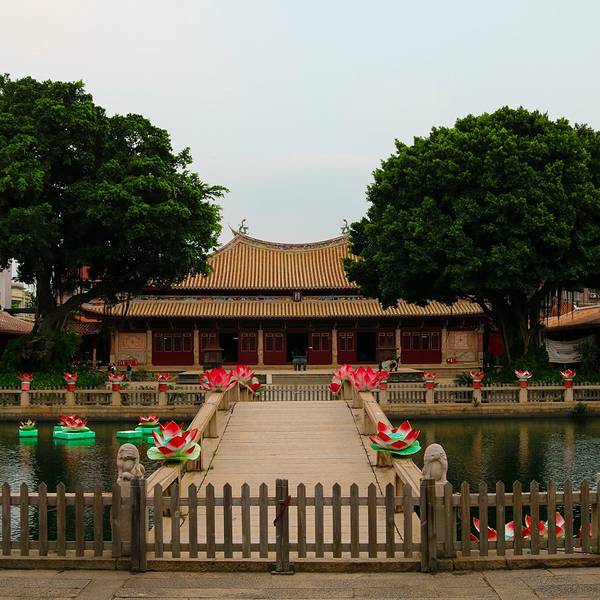 府文廟,位于鲤城区中山中路,占地达6万平方米。始建于唐开元末年,南宋绍兴七年(1137年)重建。左学右庙,规制完整。历代重修,是包含宋、元、明、清建筑形式的孔庙建筑群。大成殿保存宋代建筑形制,重檐庑殿顶,面阔七间,进深五间,外檐斗拱用五铺作单抄双下昂,昂尾抵下平,保持宋代真昂形制,出檐深远,抬粱式木构架,四椽栿对乳栿,前后用四柱。文庙内设有"泉州府文庙文物陈列馆"、"泉州历史名人纪念馆"、"泉州古代教育展览馆"。 展开