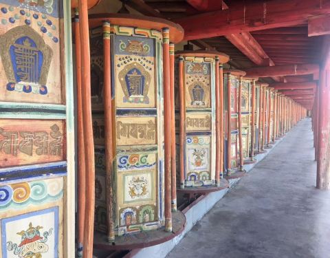 实用 ...好的让我们敲钟祈福,并且邀请我们带我们逛寺庙,转转经筒,真的很好的一位老师傅,给人很真诚的感觉从祁连县城开车到阿柔大寺半小时不到,路比较好走,因为是包车的,所以不知道公共交通怎么走。一大早差不多九点到的寺庙,门口已经有一些信徒开始在转寺庙,供奉祭品了。一路见到很多信徒围着寺庙顺时针的转,嘴...从祁连县城开车到阿柔大寺半小时不到,路比较好走,因为是包车的,所以不知道公共交通怎么走。一大早差不多九点到的寺庙,门口已经有一些信徒开始在转寺庙,供奉祭品了。一路见到很多信徒围着寺庙顺时针的转,嘴里还念念有词。我们直接从正门进去的,这个时候游客少,没见有卖票的地方就直接进去了。左右两边是师傅们的禅房,游客不便打扰,我们就沿着中间一直走,有些殿内部是锁上的,所以只能在外边转转,庭院里有洒了很多谷子,给鸟儿们来吃。正对主殿的左边有八个白塔,远处拍照很美。早晨的寺庙给人的感觉很宁静安详。逛到偏殿左边的时候,师傅们养了两只小奶狗,一直好奇的跟着我们,后来偏殿进来了位老师傅,看到我们游客,很友好的让我们敲钟祈福,并且邀请我们带我们逛寺庙,转转经筒,真的很好的一位老师傅,给人很真诚的感觉。
