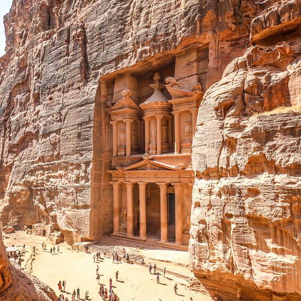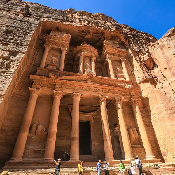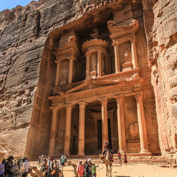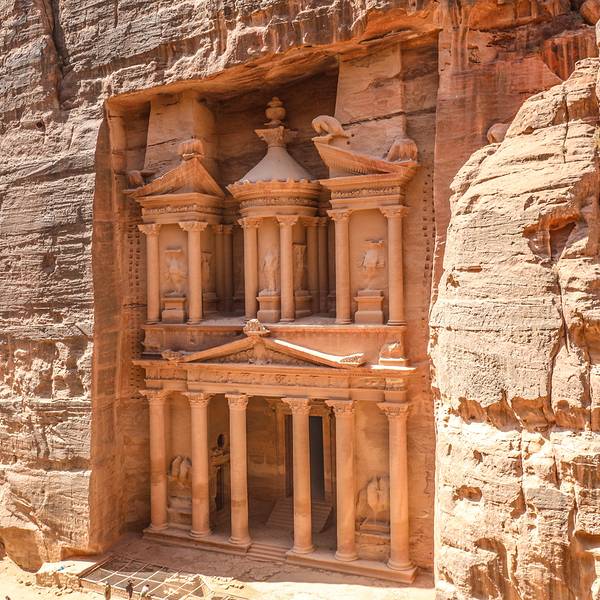 【卡兹尼神殿】是佩特拉古城遗址中最精美、最绚丽的建筑,已有两千年的历史【卡兹尼神殿】是佩特拉古城遗址中最精美、最绚丽的建筑,已有两千年的历史。卡兹尼宝库是一座由玫瑰红色彩巨岩凿雕而成的,在不同时间的光线里,呈现出不同的色彩。这座高140英尺、宽90英尺,有着浓浓希腊风格的...【卡兹尼神殿】是佩特拉古城遗址中最精美、最绚丽的建筑,已有两千年的历史。卡兹尼宝库是一座由玫瑰红色彩巨岩凿雕而成的,在不同时间的光线里,呈现出不同的色彩。这座高140英尺、宽90英尺,有着浓浓希腊风格的壮丽建筑,据说曾经是海盗窝藏珠宝的地方,也就是家喻户晓阿里巴巴与四十大盗故事的发祥地。当地的贝都因人传说其顶部藏有宝藏,所以神殿俗称“宝库”。在1812年为瑞士旅行家发现时,神殿已遭到破坏,最明显的是神殿门前的柱子有两根断裂,后来被修复。 展开