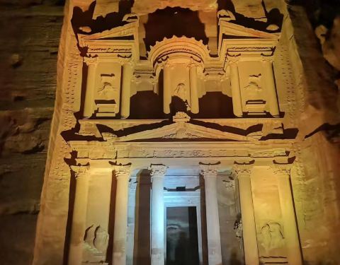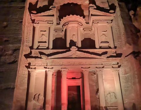 卡姿尼神殿是佩特拉古城的核心景点,晚上这里有深邃荣耀的激光秀可以换一种感觉看看带着神秘面纱的神殿卡姿尼神殿是佩特拉古城的核心景点,晚上这里有深邃荣耀的激光秀可以换一种感觉看看带着神秘面纱的神殿。有一种庄重感也有一种神秘的力量和气息。