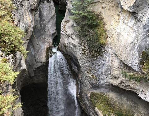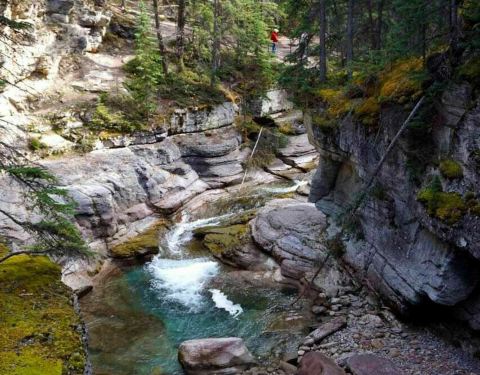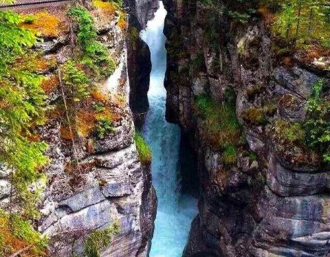 驱车前往玛琳峡谷,峡谷中溪泻下,水从崎岖的山谷中激流,时而瀑布飞泻,峡谷要经9座桥,我们走了5...从哥伦比亚冰原下来,驱车前往玛琳峡谷,峡谷中溪泻下,水从崎岖的山谷中激流,时而瀑布飞泻,峡谷要经9座桥,我们走了5座桥约半小时。