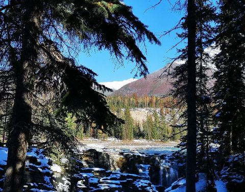 瀑布位于93公路和93A公路的交汇处,从贾斯珀镇出发沿着93公路行驶半小时左右即到。
