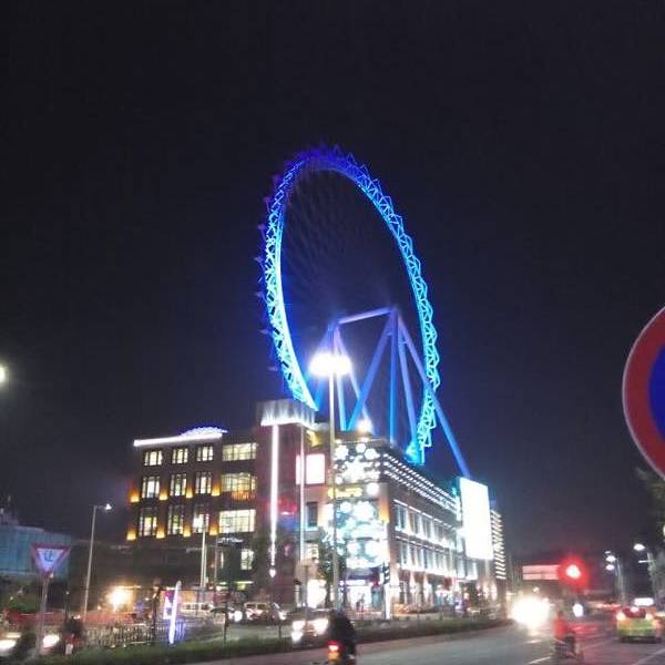 夜景不错,觉得票价贵就没有上,白天30几度一个鬼影也没倒摩天轮照开,也是财大气粗