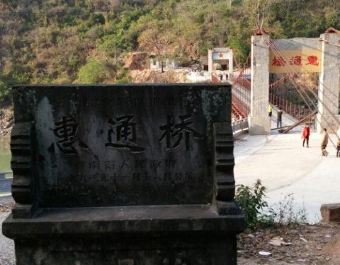 惠通桥 初为铁链索桥,后由爱国华侨梁金山出资改建为钢索大吊桥。