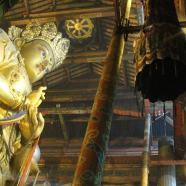 寺内最引人瞩目的是世界最大的铜铸大佛,高达28米,全身镀金,镶嵌大量宝石,气势雄伟,富丽堂皇,是蒙古的国宝。作为乌兰巴托藏传佛教的最有代表性的寺院,甘丹寺具有不可撼动的地位。