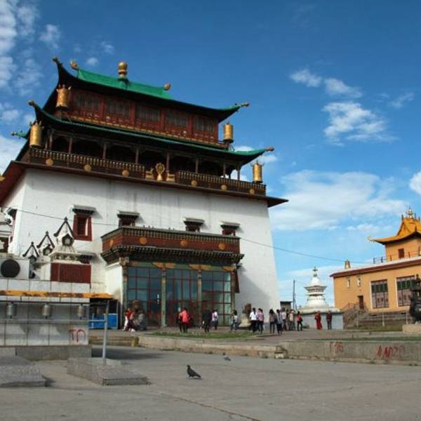 甘丹寺位于乌兰巴托市中心,是蒙古最大的寺庙,建于1809年清嘉庆14年。甘丹寺全名为Gandantegchinlen,意为“极乐圣地”。乌兰巴托市的前身大库伦是甘丹寺的基础上逐渐发展成城镇的。
