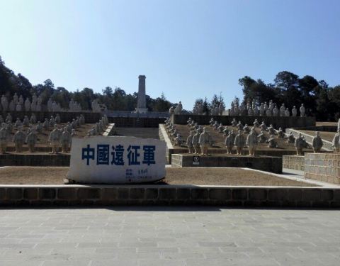 昔日抗战远征军,拼死搏斗保家园。硝烟散尽山河在,花开故土迎客来。