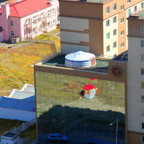 这里可以俯瞰乌兰巴托全城,山顶建筑的设计很特别也很巧妙,跟远处的山景完全融合成一副和谐的画卷。