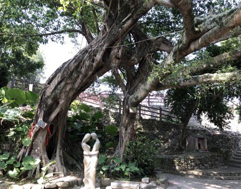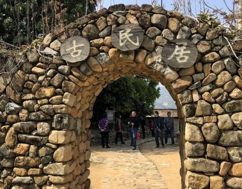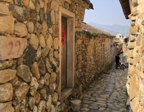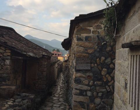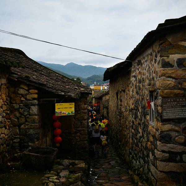 古民居,至今已有一千三百多年的历史。村中原有东、西、南、北四个城门作为出入口,现仅存北门、西门遗址。绕了古民居一圈,围墙里民房都是土木结构,墙壁是鹅卵石砌成的,人行道、井院也均采用鹅卵石铺成,设计独特,布局巧妙,整个村落鹅卵石小道错综复杂、四通八达。而此次村跑的赛道就有经过古民居,曲径通幽,韵味无穷。--水云涧,百年老榕,灵山碧水--