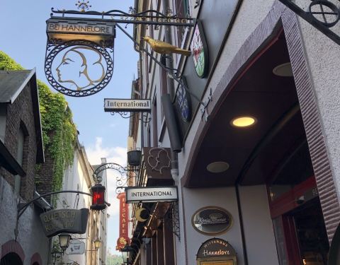 最有名的小巷叫做【画眉鸟巷】,是当地人最爱的步行街。瞧瞧我发现了什么最有名的小巷叫做【画眉鸟巷】,是当地人最爱的步行街。街上到处铺满鲜花绿叶,两边有各式酒庄和小店,想买伴手礼的话不要错过这里哦。瞧瞧我发现了什么!Oskar先生什么时候在德国开了个酒吧?哈哈哈。如果想尽情...最有名的小巷叫做【画眉鸟巷】,是当地人最爱的步行街。街上到处铺满鲜花绿叶,两边有各式酒庄和小店,想买伴手礼的话不要错过这里哦。瞧瞧我发现了什么!Oskar先生什么时候在德国开了个酒吧?哈哈哈。如果想尽情地拍拍拍,建议逛完画眉鸟巷以后再去其他小巷子逛逛。比起画眉鸟巷的人头攒动,其他巷子人要少很多,相机快门随便按~仲夏时节,吕德斯海姆还是一年一度街头表演节的胜地,会有很多乐队或爱好者来这里演出。在广场吹着风听了一会儿乐手的露天演唱,突然有点羡慕生活在这里的人。就这么不紧不慢地,把日子过成了诗里的模样。 展开