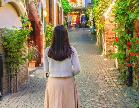 从吕德斯海姆火车站向右走约5分钟到达巷口。